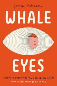 Next meeting: Sunday, November 16th at 10:15 a.m. (when Sunday School starts) in the Community Room. We will discuss Whale Eyes, a memoir by James Robinson. “Told through an experimental mix of intimate anecdotes and interactive visuals, this book immerses readers in James’s experiences growing up with strabismus, allowing them to see the world through one eye at a time. Readers will get lost as they chase words. They’ll stare into this book while taking a vision test. They’ll hold it upside down as they practice “pretend-reading” and they’ll follow an unlikely trail toward discovering the power of words. (Amazon)