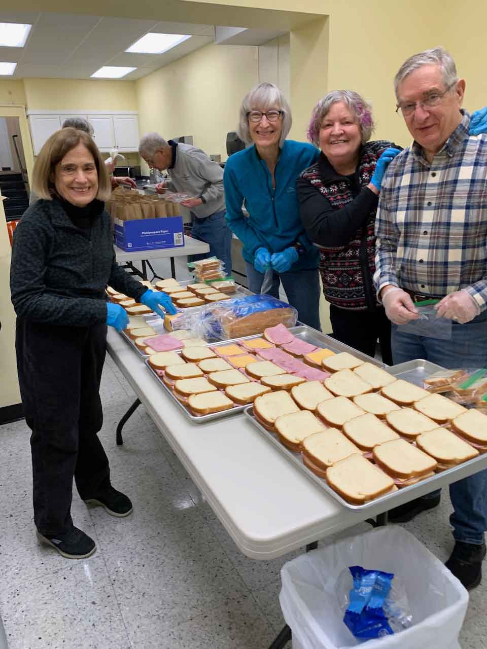 Loaves and Fishes sandwiches were delayed this month due to the snowstorm. Doey Barnett helped with Cathy and Jim Mieczkowski and Jeanne Warner on Wednesday Jan. 28.