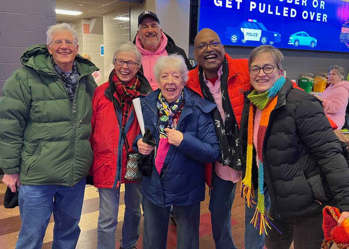 Several people, including this hardy group, ventured out in the cold on Saturday, February 7, 2026, to watch the UConn Women play Butler. Completely by chance these friends ran into each other before the game! Pictured from left to right: Bob and Ginny Vocelli, Helen George in front of her son, and Mick and Amy Melvin.
