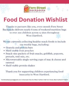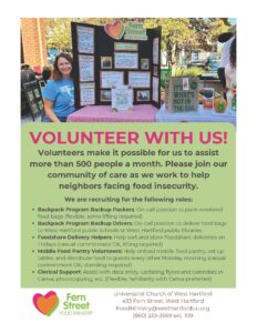 Every month as part of our Outreach mission, we make 80 sandwiches and fill lunch bags for folks in the Asylum Hill neighborhood with “very low food security.”
