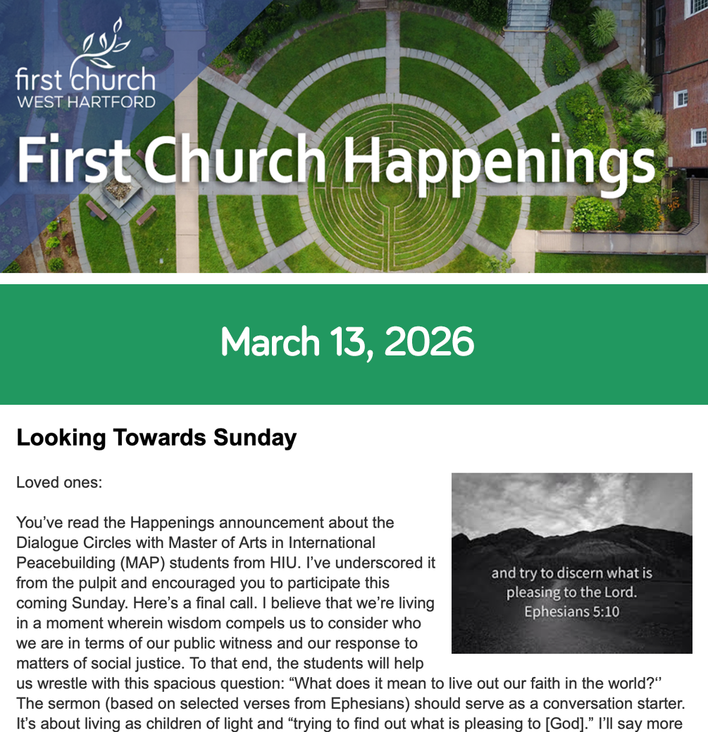 Content submissions for Sunday Notes are due by noon on Tuesdays to: office.manager@whfirstchurch.org